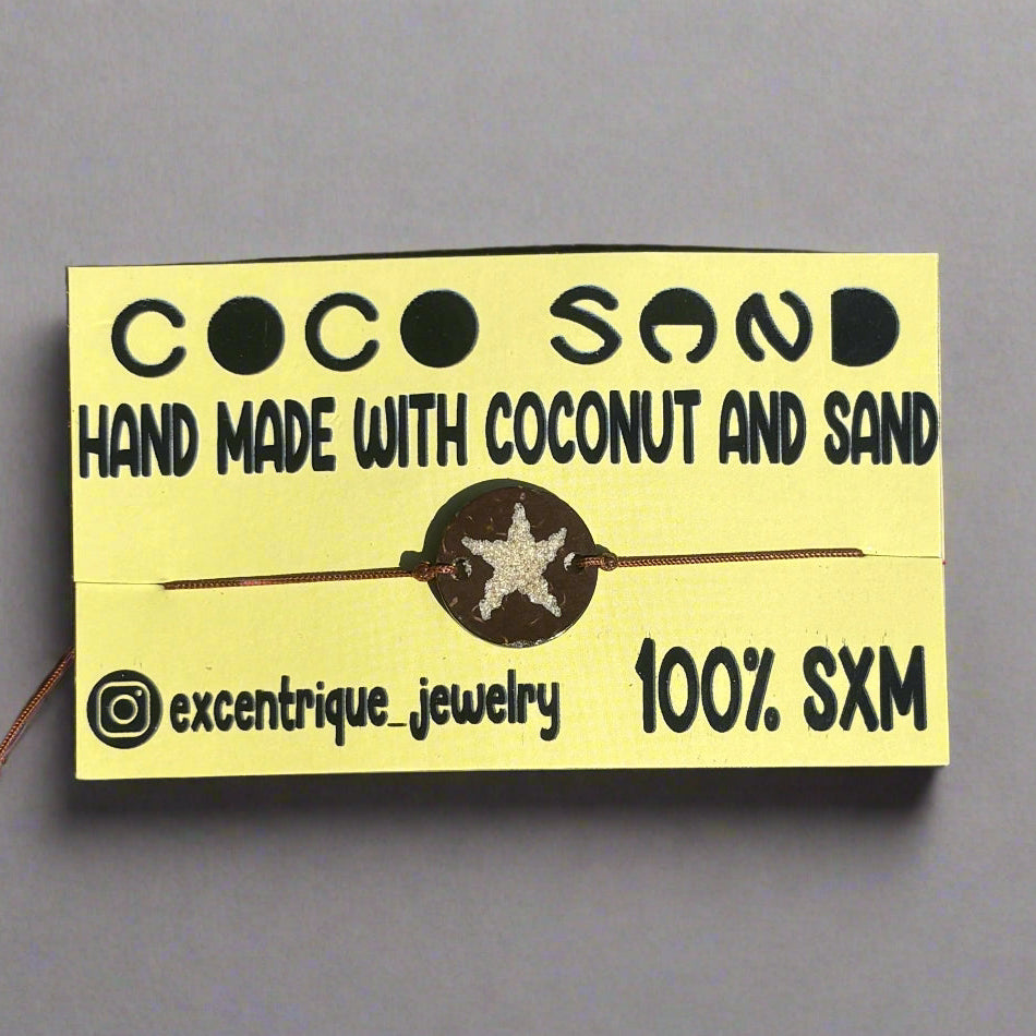 Bring the calm of the sea to your wrist with our COCO SAND bracelet, handcrafted in St. Maarten using real coconut shell and island sand. This design features a delicate starfish inlay—symbolizing renewal, strength, and the magic of the ocean.